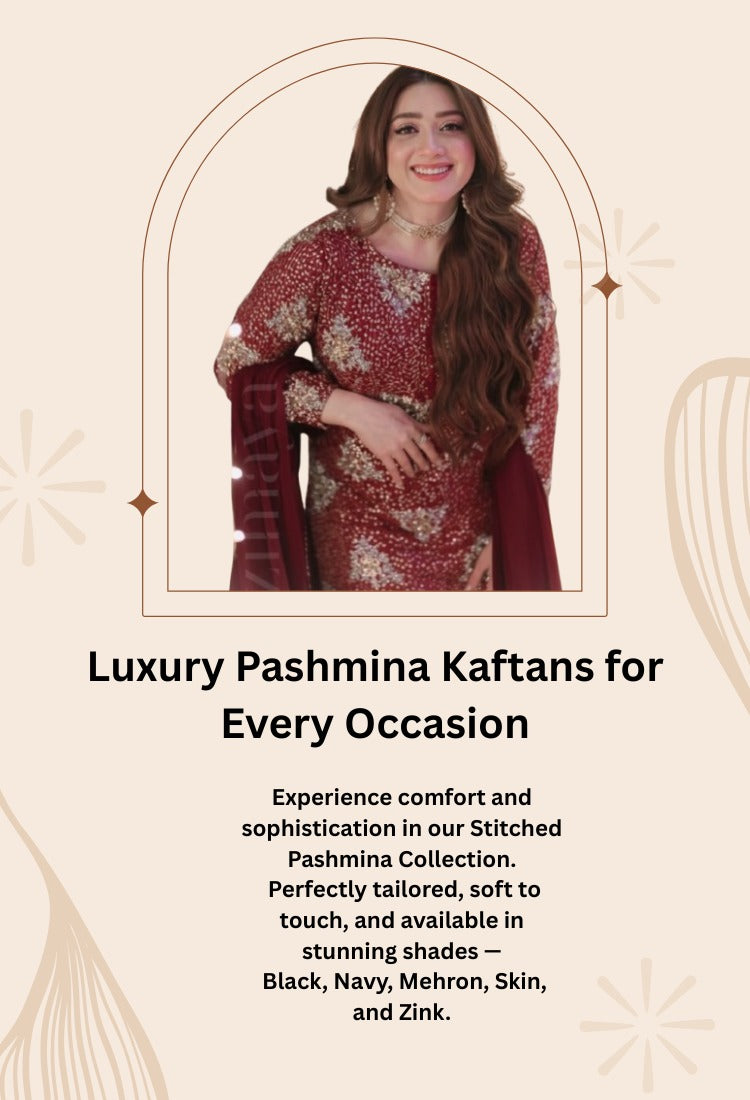 Luxury Stitched Pashmina Embroidered Kaftan – Available in S, M, L & XL