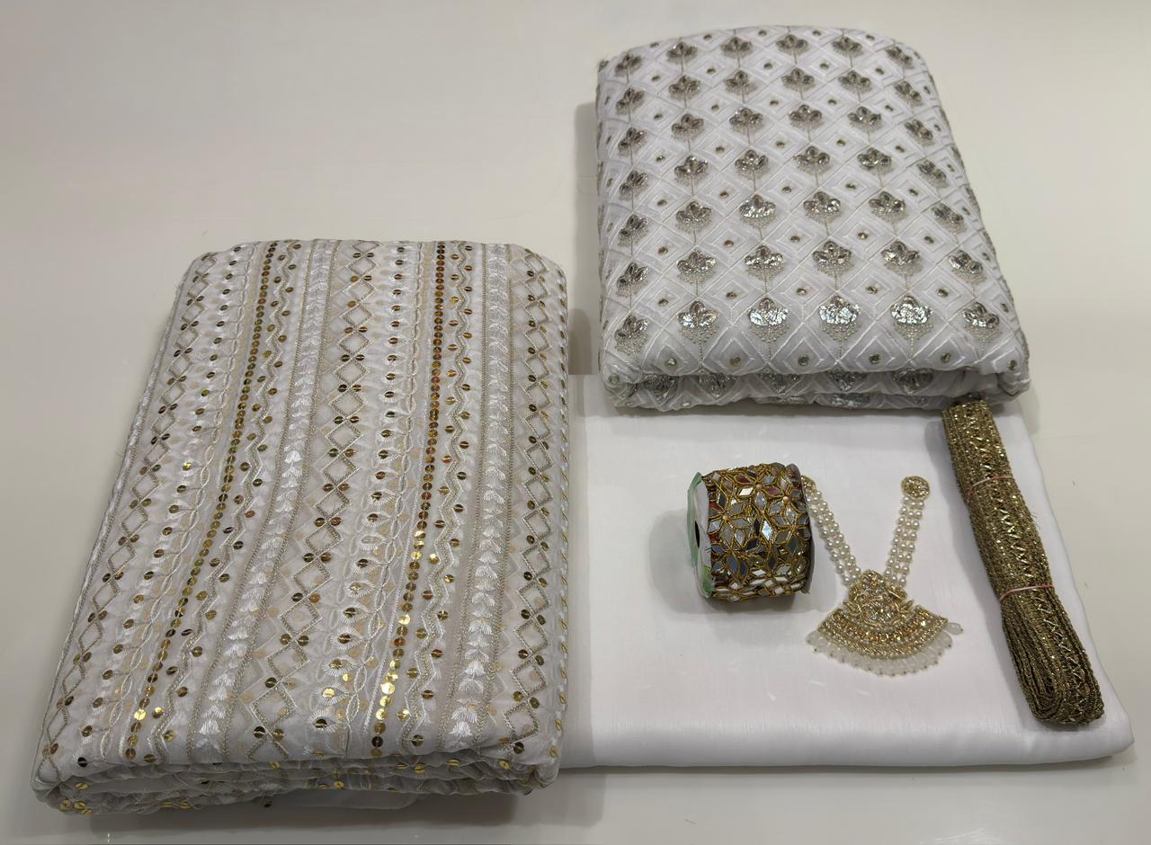 Elevate your party and summer wardrobe with this stunning 3-piece chiffon set featuring exquisite foil work.